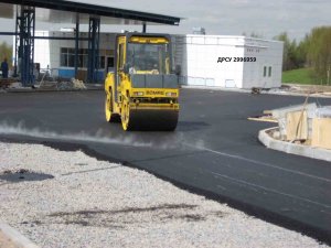 Строительный компании ДРСУ-100 выполняет асфальтирование дорожных покрытий, строго соблюдая технологию и используя специальную технику на различных этапах работы.